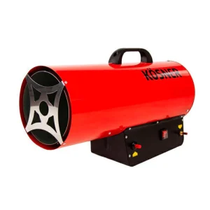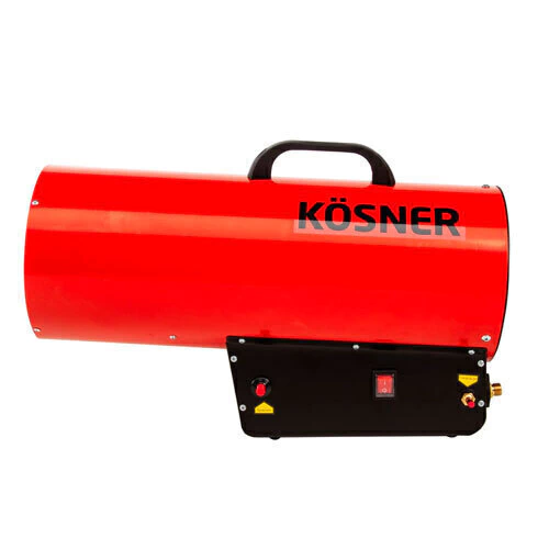 El generador de aire caliente marca Kösner ocupa gas licuado en formato de 15 kilos. Este equipo está diseñado para calefaccionar grandes superficies.